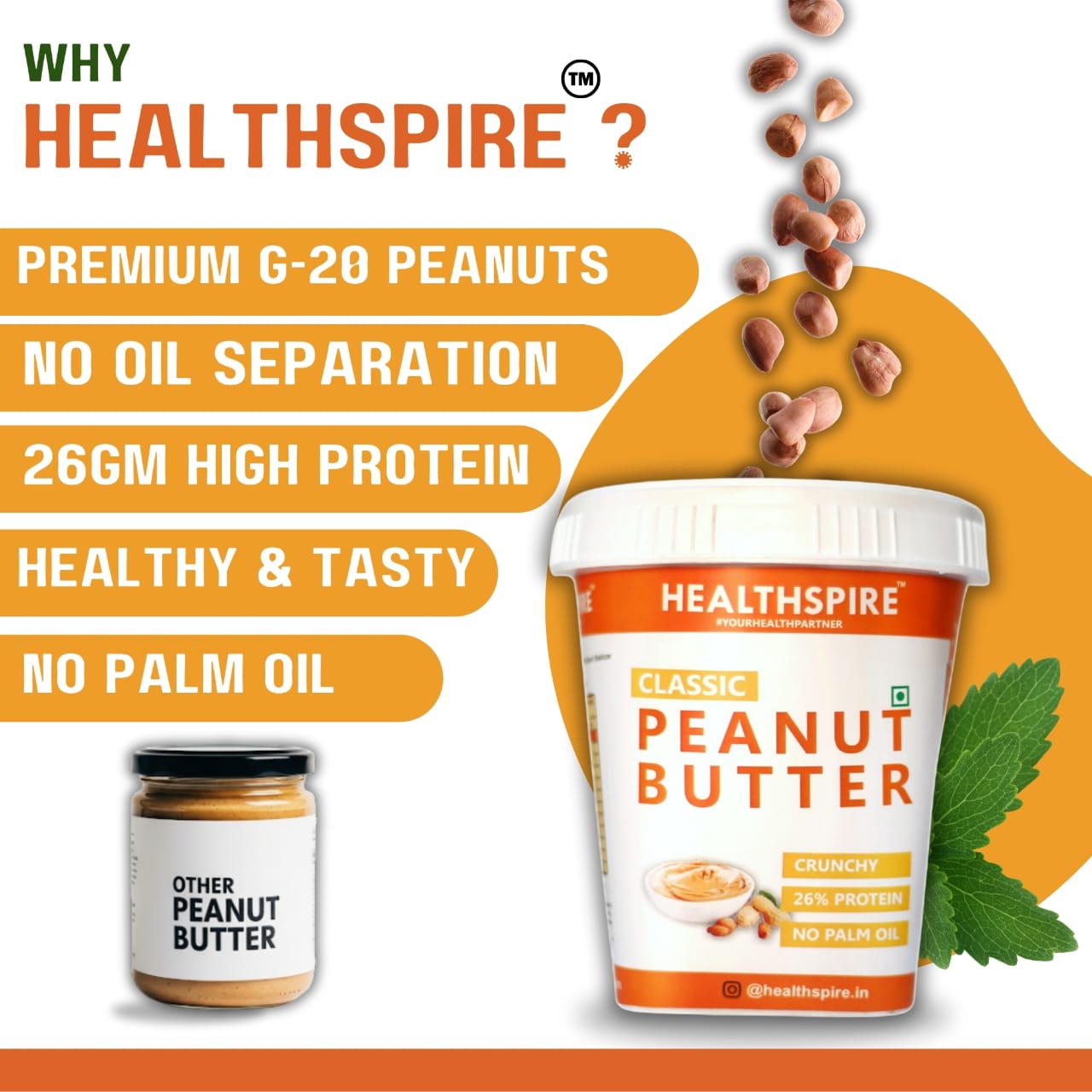 Healthspire Classic Peanut Butter Crunchy | 26% High Protein | No Palm Oil | Made from Premium Peanuts