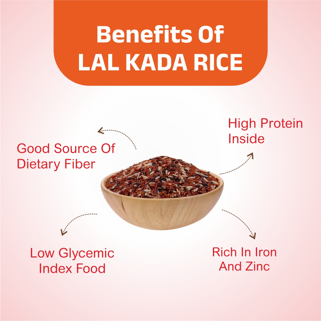Wholesome and nutrient-rich Lal Kada Rice, naturally red and packed with antioxidants, fiber, and iron. Perfect for a heart-healthy, gluten-free diet.