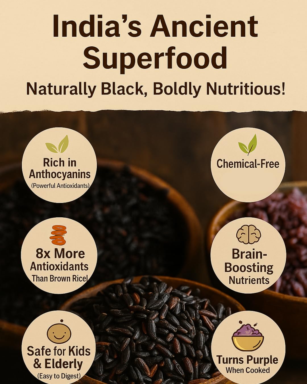 Nutrient-rich organic black rice, naturally grown without chemicals. High in antioxidants, fiber, and iron—perfect for healthy meals, salads, pulao, and traditional recipes.