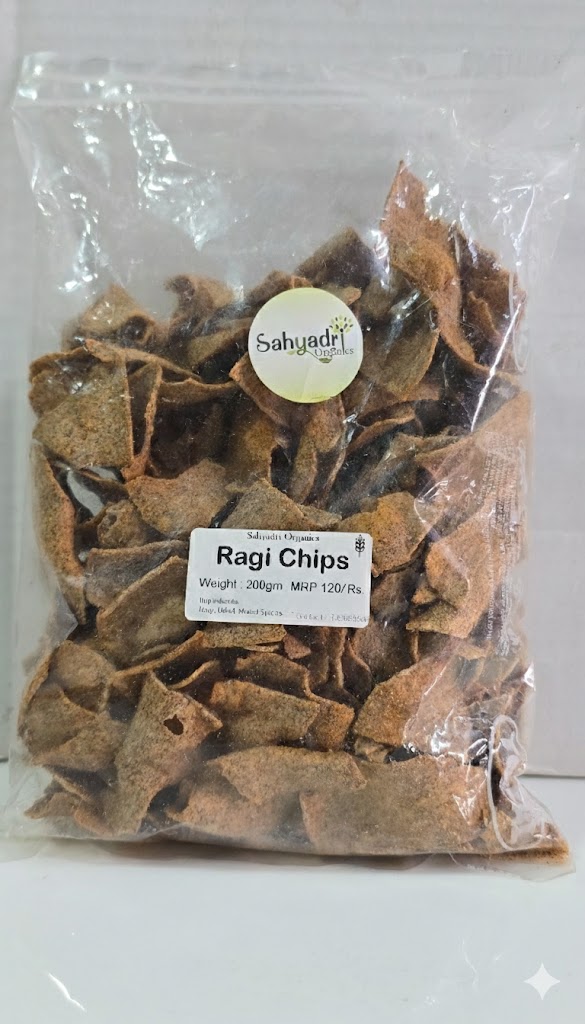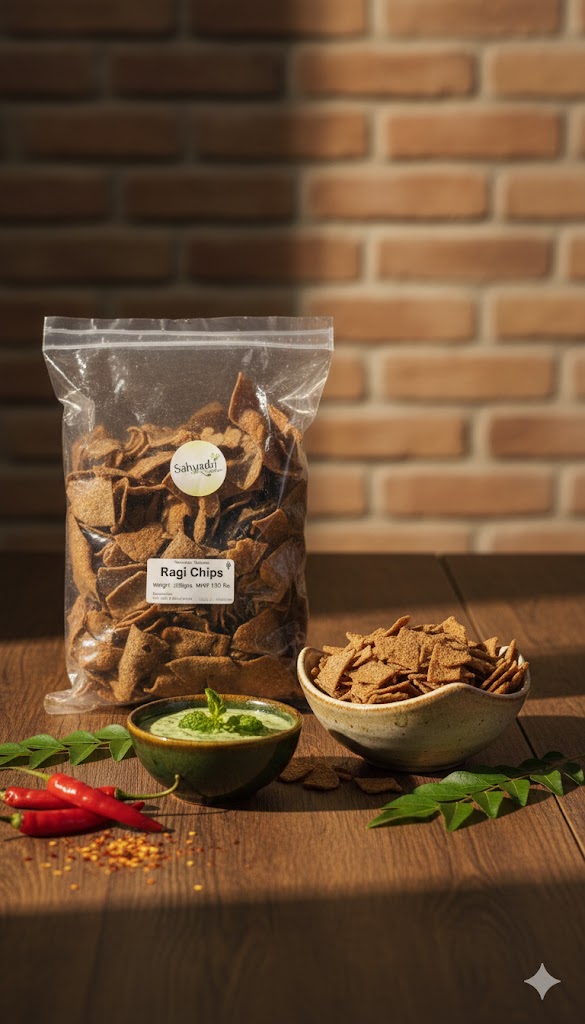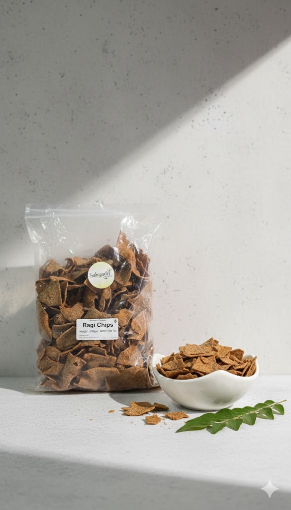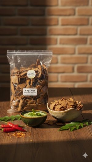 Crispy and tasty Ragi Chips made from nutritious finger millet, offering a healthy and delicious snacking option for everyday munching.