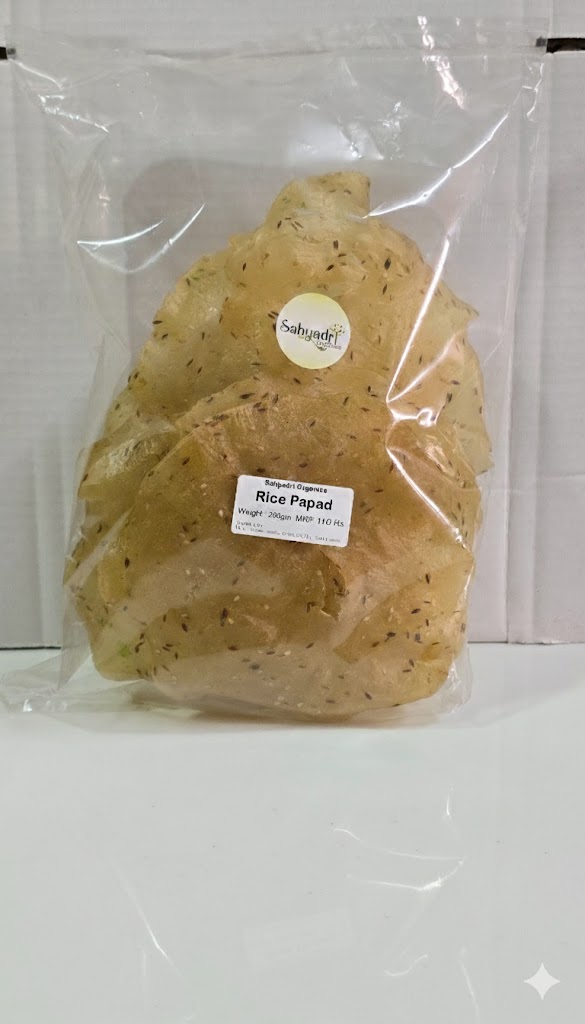 Crispy and light Rice Papad made from quality rice flour and traditional spices. A perfect crunchy side for everyday meals.